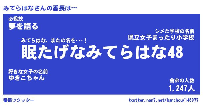 | 伝説のあだ名 | 『封印されしスナイパーみてらはな』 |