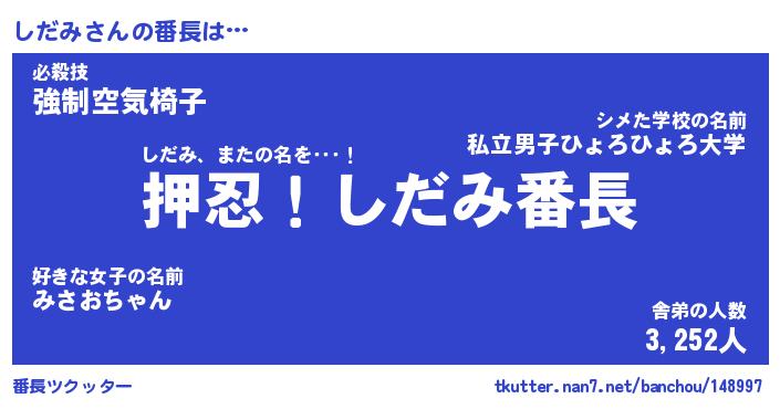 | 肩書あだ名 | 『しだみ社長』『しだみ総理大臣』 |