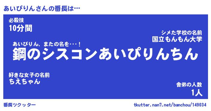| 伝説のあだ名 | 『封印されしスナイパーあいぴりん』 |