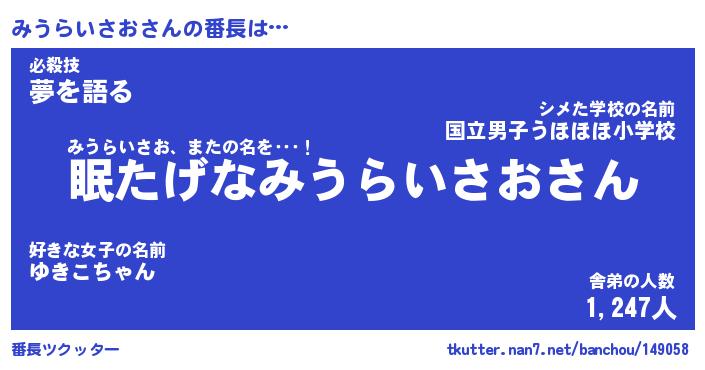 | 伝説のあだ名 | 『封印されし竜騎士みうらいさお』 |