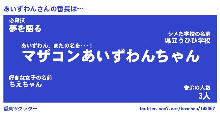 | 肩書あだ名 | 『あいずわん御曹司』『あいずわん大統領』 |
