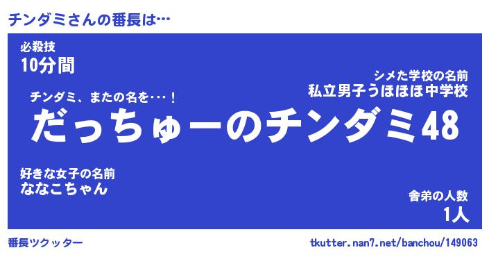 | ヒーロー風カッコイイあだ名 | 『スーパーチンダミ』『暗黒騎士チン』 |