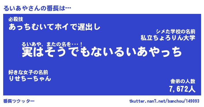 | ファンタジー風あだ名 | 『ルイフェル』『エターナルルイアヤー』 |