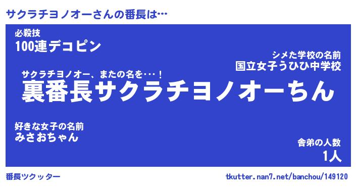 | ヒーロー風カッコイイあだ名 | 『スーパーサクラチヨノオー』 |