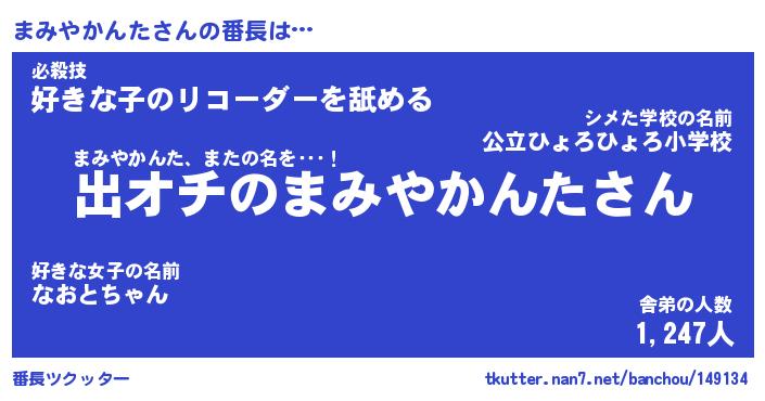 | 肩書あだ名 | 『まみやかんた社長』『まみやかんた班長』 |