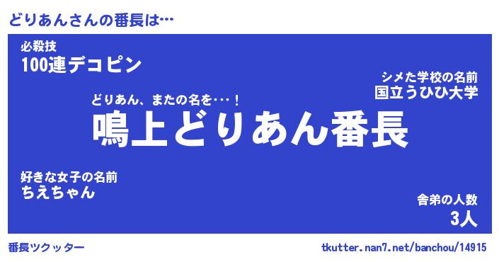 | 肩書あだ名 | 『どりあん御曹司』『どりあん総理大臣』 |