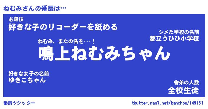 | 肩書あだ名 | 『ねむみ社長』『ねむみ大統領』 |