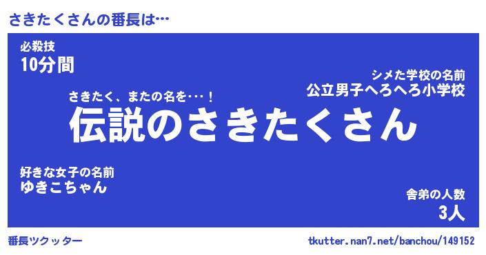 | 意味不明あだ名 | 『ペロリンさきたく』『永久保存さきたく』 |