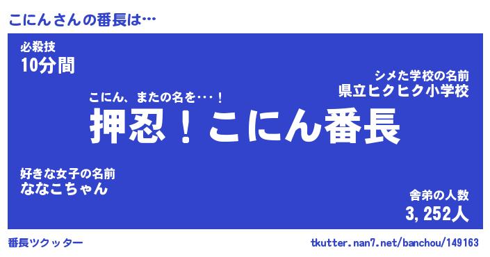 | ヒーロー風カッコイイあだ名 | 『スーパーコニン』『ウルトラこにんマン』 |
