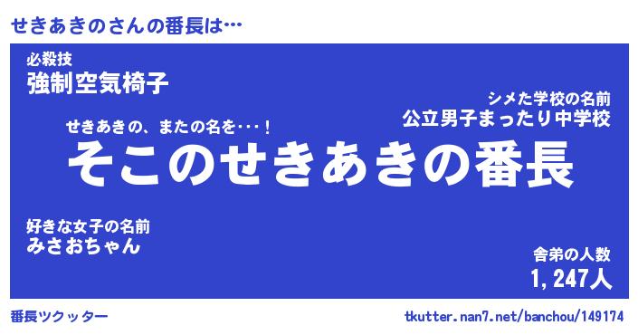 | ヒーロー風カッコイイあだ名 | 『スーパーセキアキノ』『暗黒騎士セキ』 |