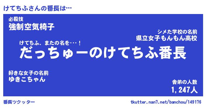 | 肩書あだ名 | 『けてちふ店長』『けてちふ総理大臣』 |