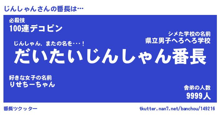 | 肩書あだ名 | 『じんしゃん店長』『じんしゃん大統領』 |
