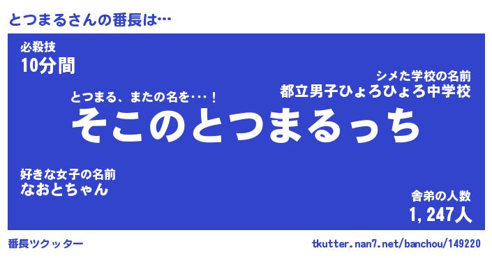 | 意味不明あだ名 | 『ペロリンとつまる』『永久保存とつまる』 |