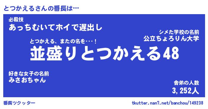 | ファンタジー風あだ名 | 『トツフェル』『エターナルトツカエルー』 |