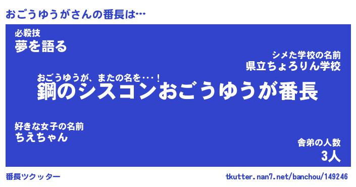 | 肩書あだ名 | 『おごうゆうが御曹司』 |