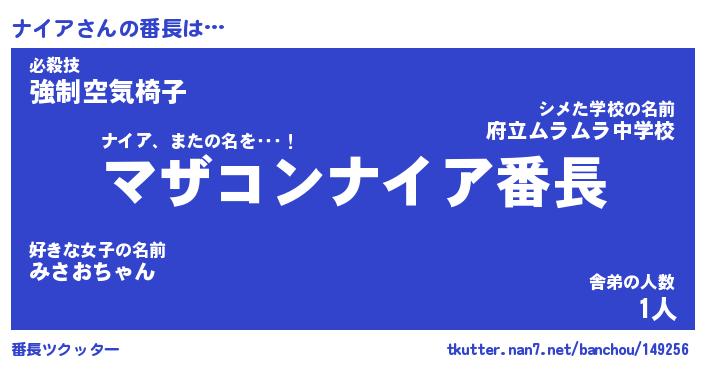 | ヘコむあだ名 | 『ナイにー』『つくし』『ナイ太郎』 |