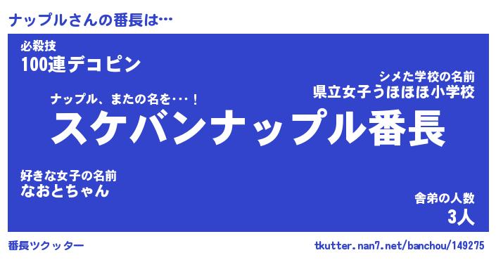 | ファンタジー風あだ名 | 『ナッフェル』『エターナルナップルー』 |