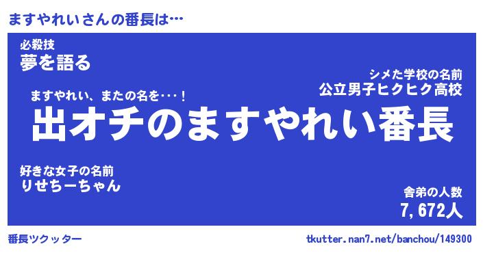| ツイッター | ますやれいさんのツイッターID『konnyaku_kun』 |