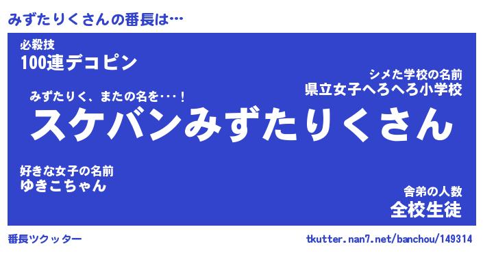 | ヘコむあだ名 | 『みずっふぃ~』『つくし』 |