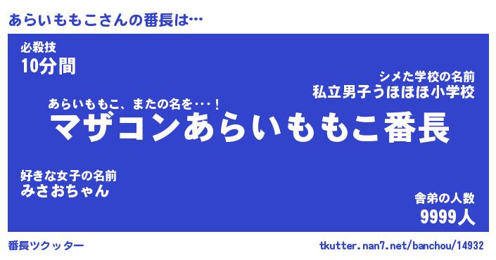 | ヒーロー風カッコイイあだ名 | 『スーパーアライモモコ』『天弓騎士アラ』 |