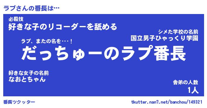 | ヘコむあだ名 | 『ラプっふぃ~』『酢こんぶ』 |