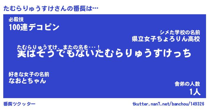 | 肩書あだ名 | 『たむらりゅうすけ御曹司』 |