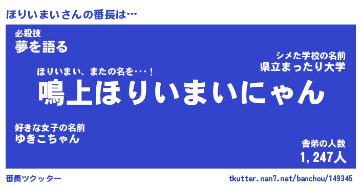 | ファンタジー風あだ名 | 『ホリフェル』『エターナルホリイマイー』 |