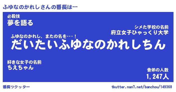 | ヘコむあだ名 | 『ふゆもー』『豆乳』『ふゆを』 |