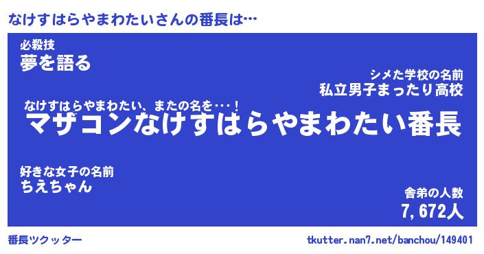 | 伝説のあだ名 | 『封印されしスナイパーなけすはらやまわたい』 |