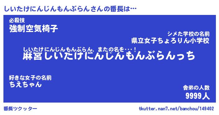 | 伝説のあだ名 | 『不死鳥の竜騎士しいたけにんじんもんぶらん』 |