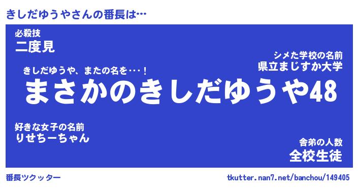 | 男性向けラノベタイトル風あだ名 | 『きしだゆうやの憂鬱』 |