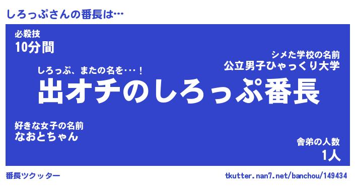 | 肩書あだ名 | 『しろっぷ社長』『しろっぷ総理大臣』 |