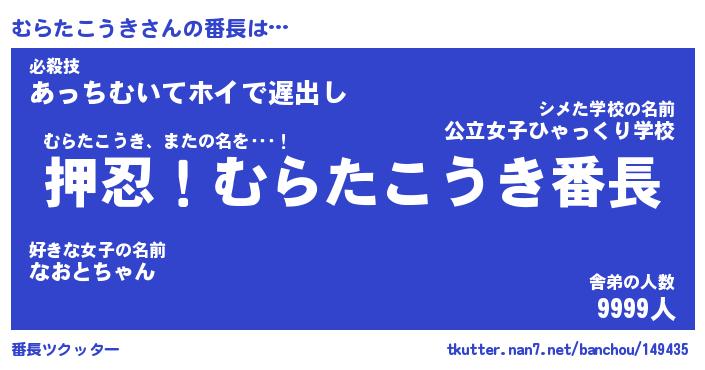 | 伝説のあだ名 | 『封印されしスナイパーむらたこうき』 |