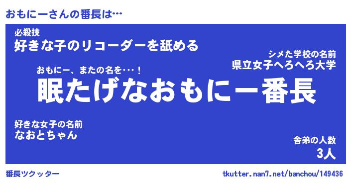 | 意味不明あだ名 | 『ペロリンおもにー』『永久保存おもにー』 |