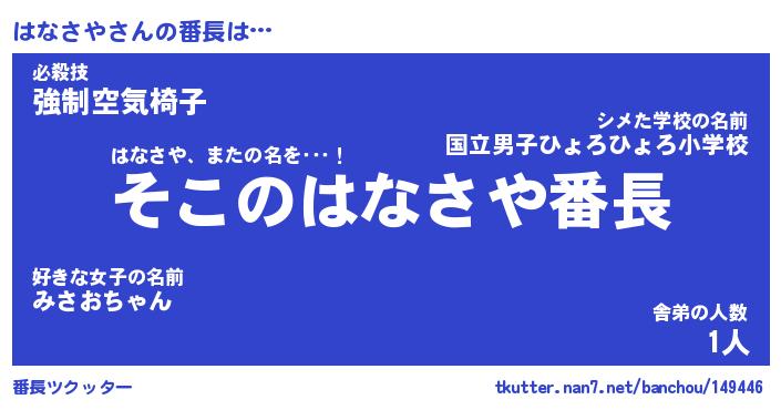 | 肩書あだ名 | 『はなさや御曹司』『はなさや国家主席』 |