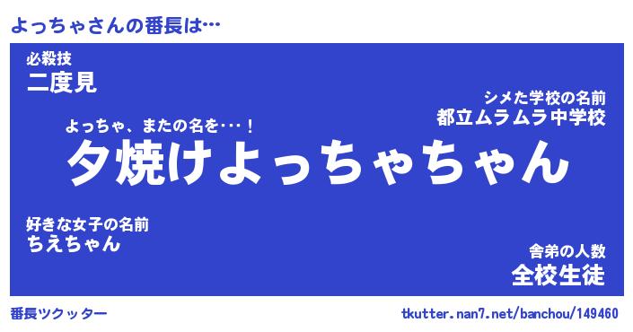 | 意味不明あだ名 | 『ペロリンよっちゃ』『永久保存よっちゃ』 |