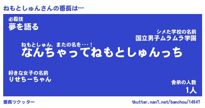 | 伝説のあだ名 | 『伝説の竜騎士ねもとしゅん』 |