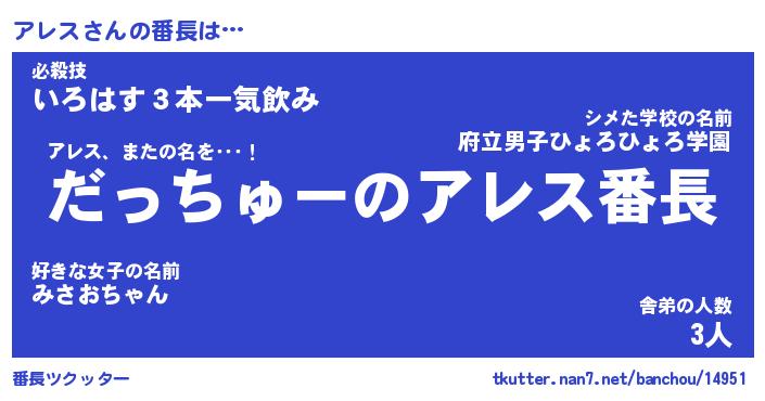 | ヘコむあだ名 | 『アレふぇ~』『なまこ酢』 |