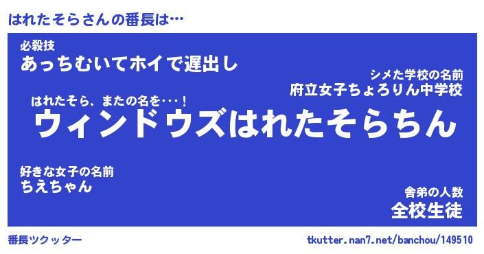 | 肩書あだ名 | 『はれたそら御曹司』『はれたそら教頭』 |