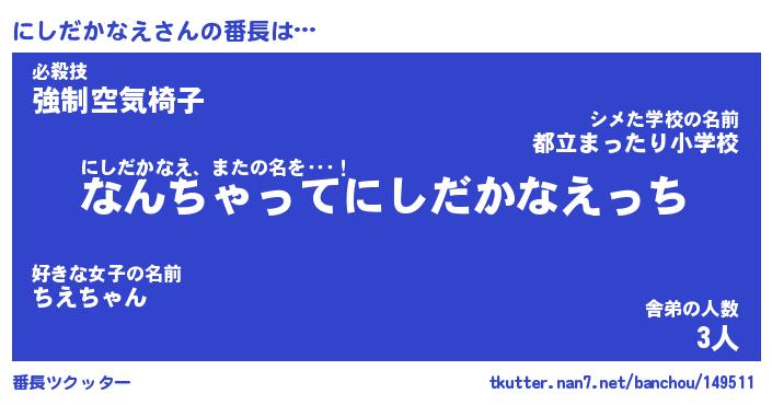 | ポケモン風あだ名 | 『ニシチュウ』『ニシダダネ』 |