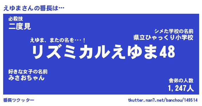 | 意味不明あだ名 | 『ペロリンえゆま』『えゆまフォーエバー』 |