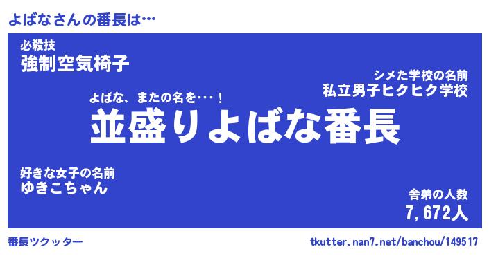 | ヒーロー風カッコイイあだ名 | 『スーパーヨバナ』『ウルトラよばなマン』 |