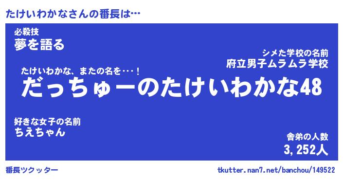 | 肩書あだ名 | 『たけいわかなCEO』『たけいわかな大統領』 |