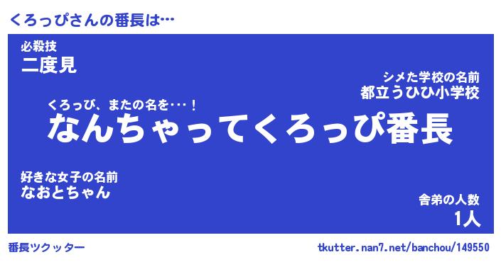 | 意味不明あだ名 | 『ペロリンくろっぴ』『永久保存くろっぴ』 |