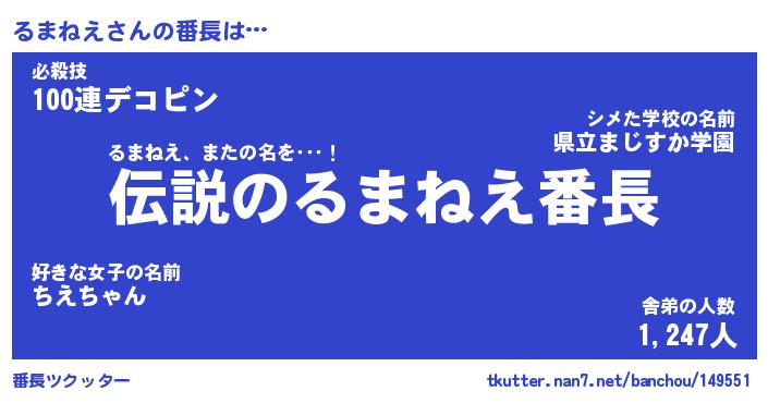 | 意味不明あだ名 | 『ペロリンるまねえ』『永久保存るまねえ』 |