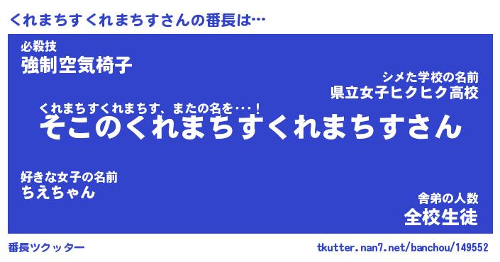 | 2回繰り返すあだ名 | 『くれくれ』『くくれれ』『うねうね』 |