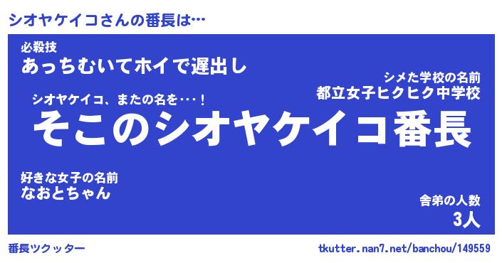 | 肩書あだ名 | 『シオヤケイコ社長令嬢』 |