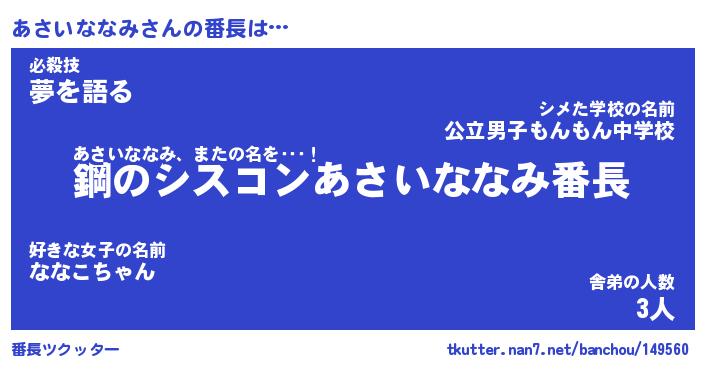 | 肩書あだ名 | 『あさいななみ社長』『あさいななみ団長』 |