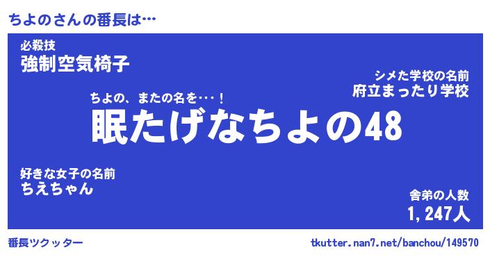 | 意味不明あだ名 | 『ペロリンちよの』『ちよのフォーエバー』 |