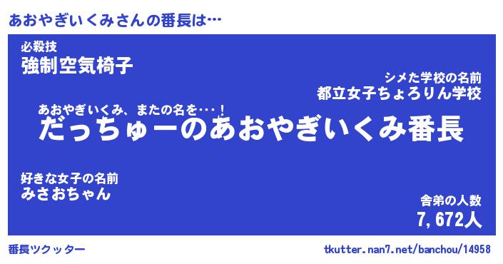 | ポケモン風あだ名 | 『アオチュウ』『アオヤダネ』 |